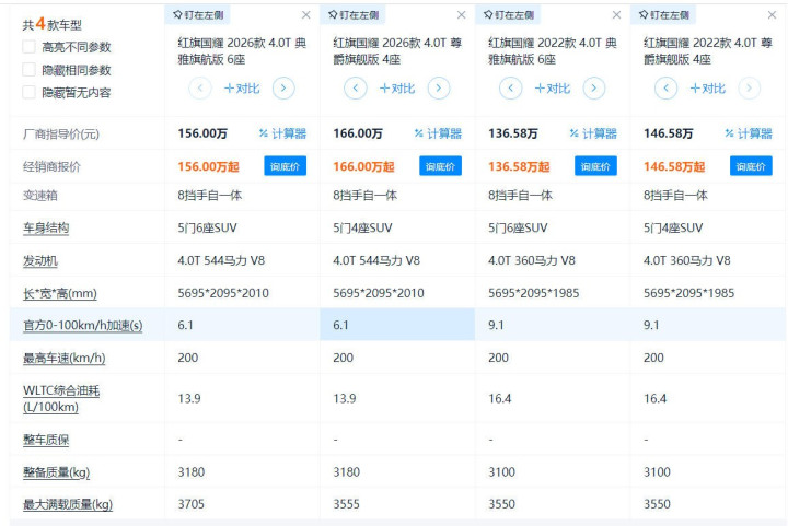 红旗国耀在近期上市了新的2026款车型,新车售价区间为156-166万元,价格可以说是相当感人。那么,对于有钱人们来说,156万起的新款红旗国耀是否值得购买呢相比起大火的仰望U8,其又有哪些不一样的产品优势?我们一起来看看。