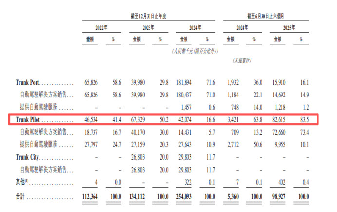 分业务来看,2025年上半年,公司来自TrunkPilot的收入约为8261.5万元,占比达到83.5%。